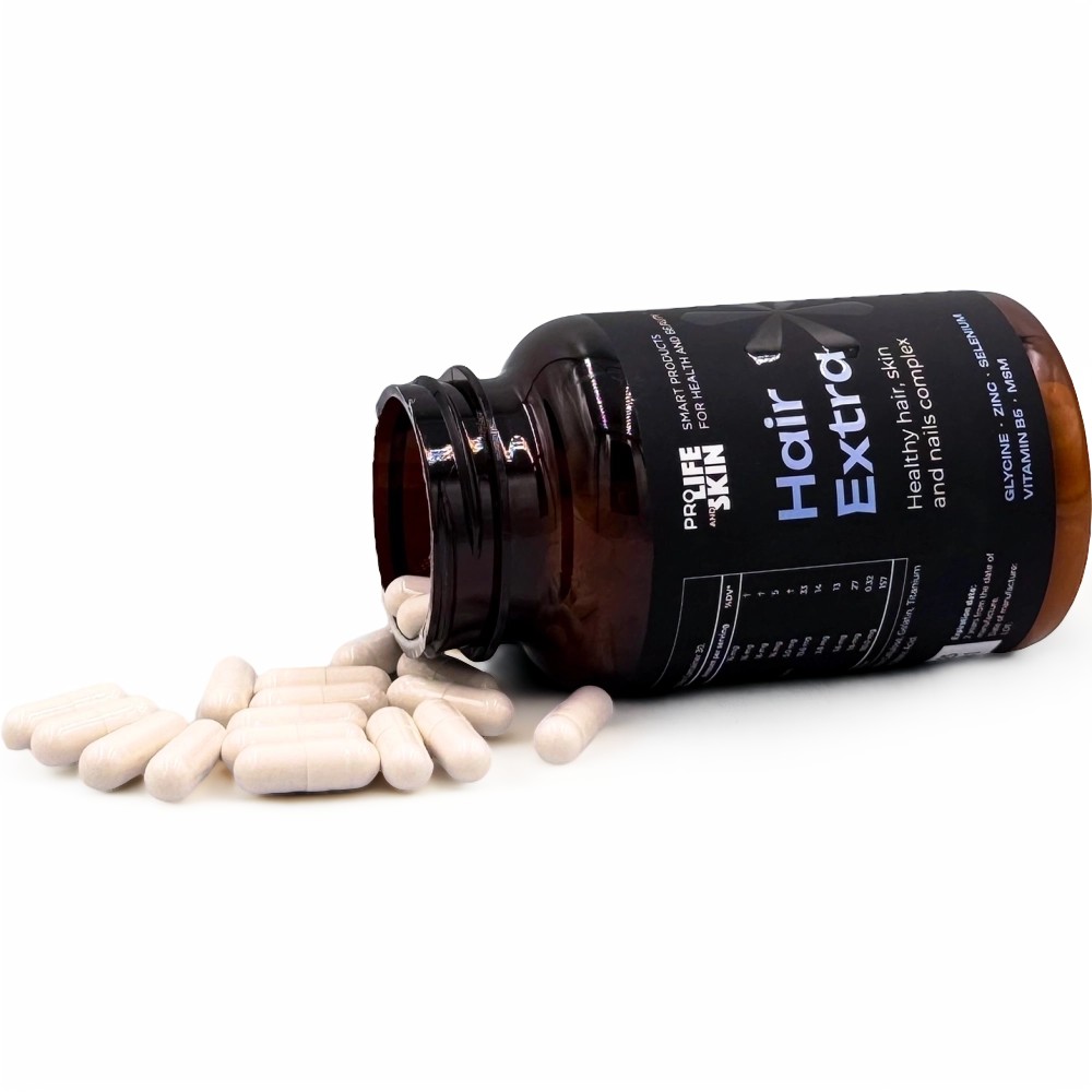 HAIR EXTRA — это витаминно-минеральный комплекс для ухода за волосами, кожей и ногтями. Может использоваться как самостоятельная терапия или в дополнение к инъекционным процедурам волосистой части головы, которые усиливают проникновение полезных веществ к луковицам волос, ускоряя их рост и улучшение состояния.